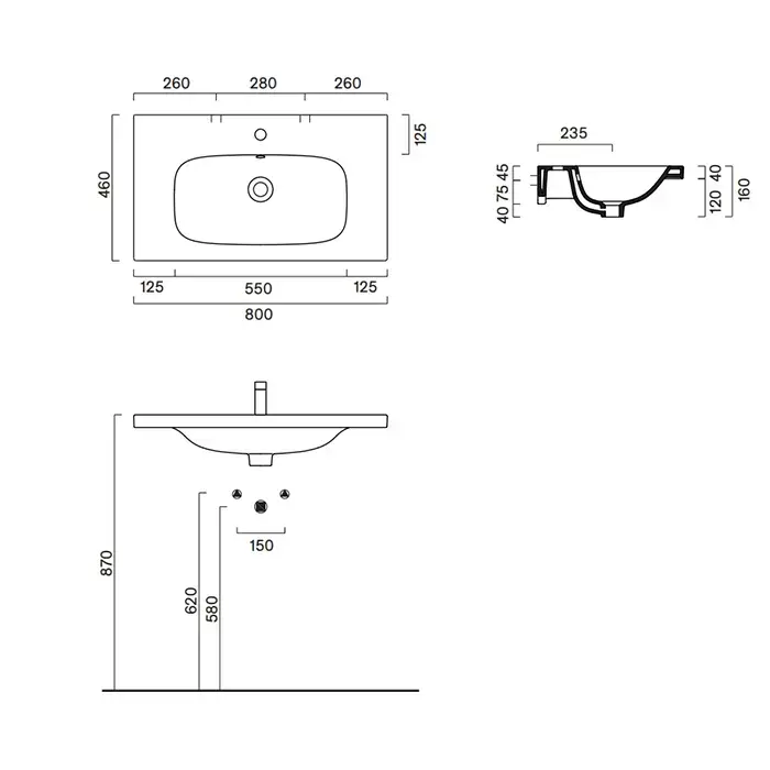 Catalano ALVEA Раковина 80x46, с 1 отв. под смеситель, покрытие Cataglaze+, цвет белый глянцевый