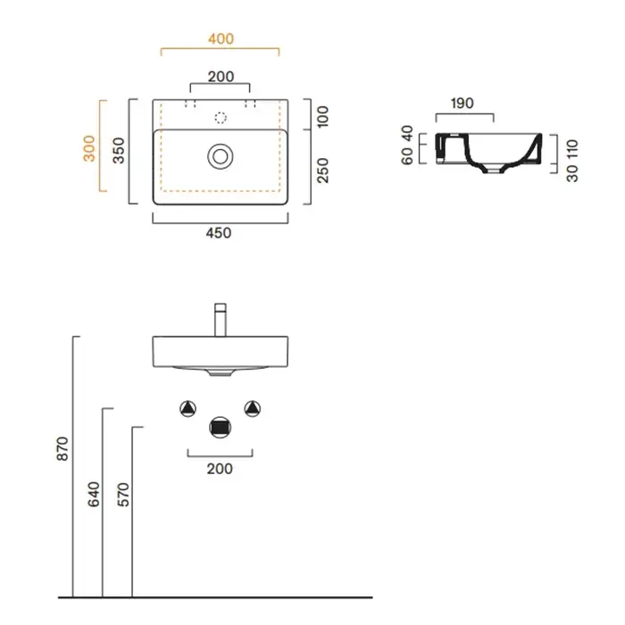 Catalano GREEN Раковина 45x35, без отв. под смеситель, покрытие Cataglaze+, цвет белый глянцевый