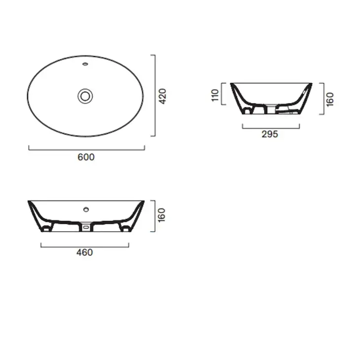 Catalano Italy Раковина 60x42см накладная, без отв., цвет: белый глянцевый