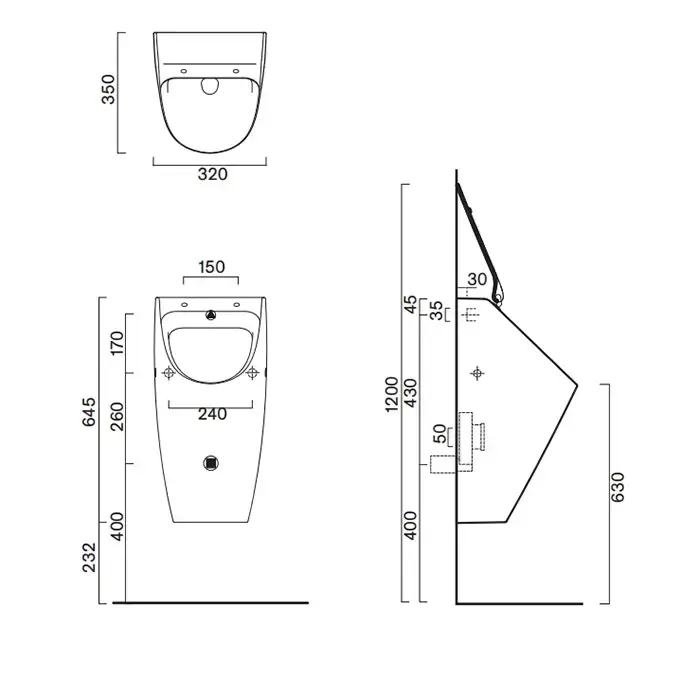Catalano Писсуар c отв. под крышку Rimless 64x32 , покрытие Cataglaze+, цвет черный матовый