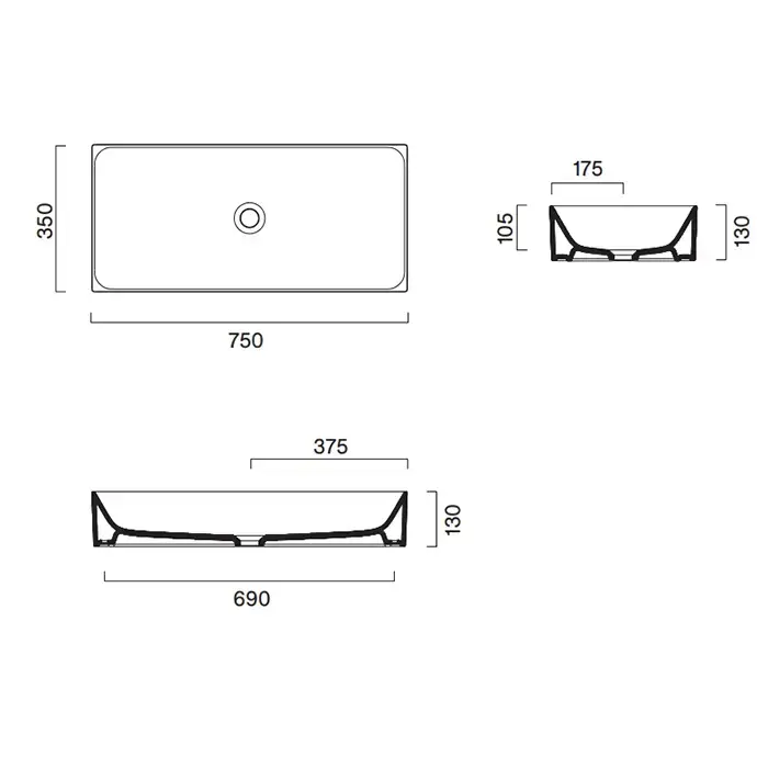 Catalano PREMIUM Раковина 75x35 накладная, без отв. под смеситель, покрытие Cataglaze+, цвет белый глянцевый