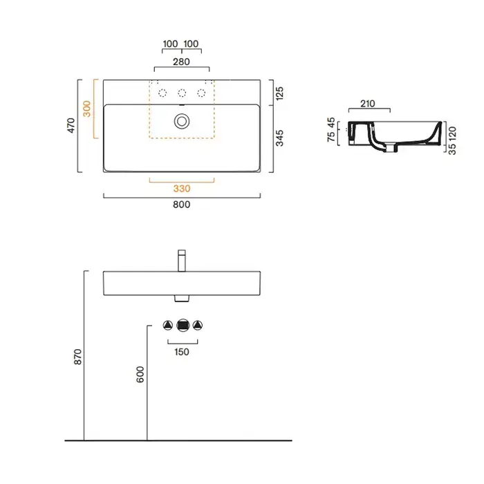 Catalano Premium Раковина 80х47см, подвесная, без отв., цвет: белый глянцевый