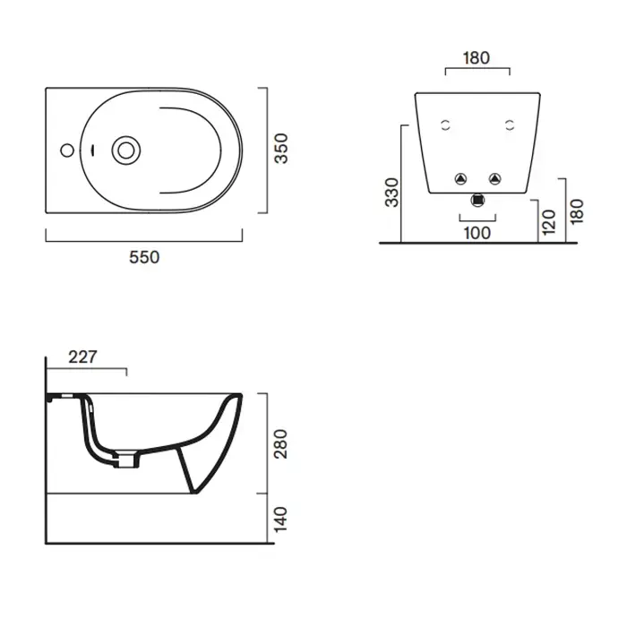 Catalano SFERA Биде подвесное 55x35, с 1 отв. под смеситель, покрытие Cataglaze+, без крепежа, цвет черный матовый