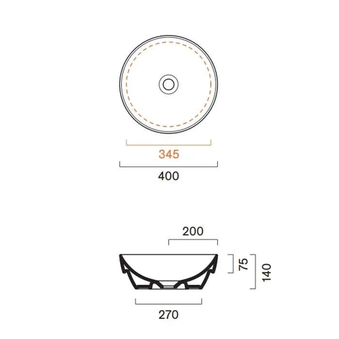 Catalano Sfera Раковина 40см h14 встраиваемая, без отв., цвет: черный матовый