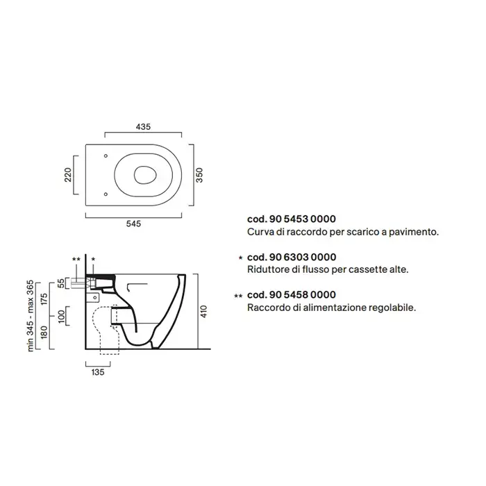 Catalano SFERA Унитаз напольный 55x35, безободковый, универс.слив, смыв Tornado, покрытие Cataglaze+, без крепежа, цвет белый глянцевый