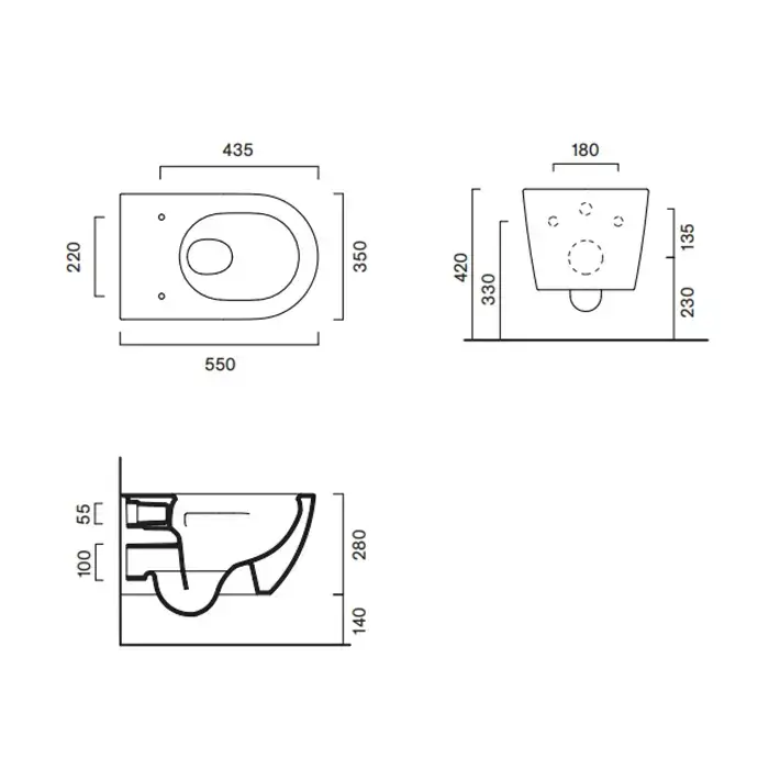 Catalano SFERA Унитаз подвесной 55x35, безободковый, смыв Tornado, покрытие Twinglaze+, без крепежа, цвет черный матовый