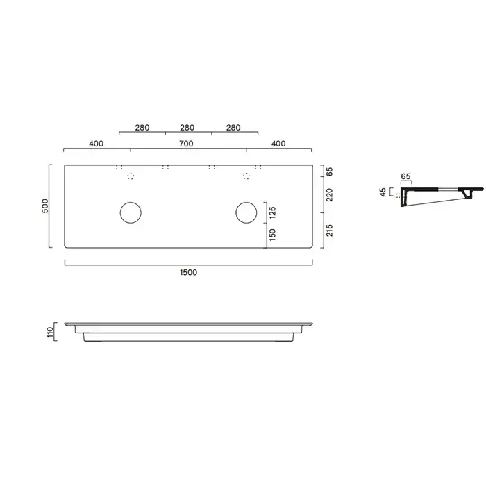 Catalano Столешница керамическая 150x50см, под две раковины, цвет: белый матовый