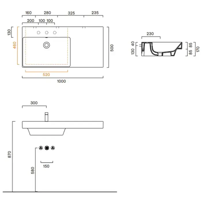 Catalano ZERO Раковина 100x50 чаша слева, с 1 отв. под смеситель, покрытие Cataglaze+, цвет белый глянцевый
