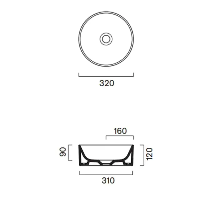 Catalano ZERO Раковина ?32 накладная, без отв. под смеситель, покрытие Cataglaze+, цвет белый глянцевый