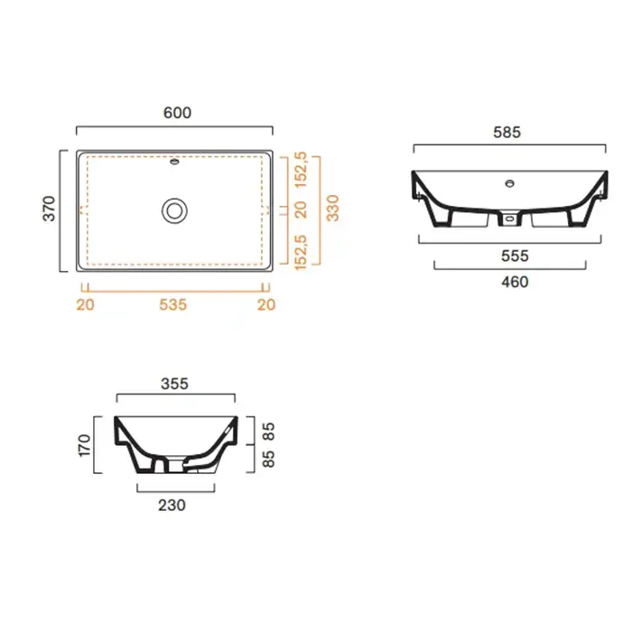 Catalano ZERO Раковина 60x37 встраиваемая, без отв. под смеситель, покрытие Cataglaze+, цвет белый глянцевый
