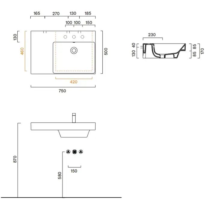 Catalano ZERO Раковина 75x50 чаша справа, без отв. под смеситель, покрытие Cataglaze+, цвет белый глянцевый