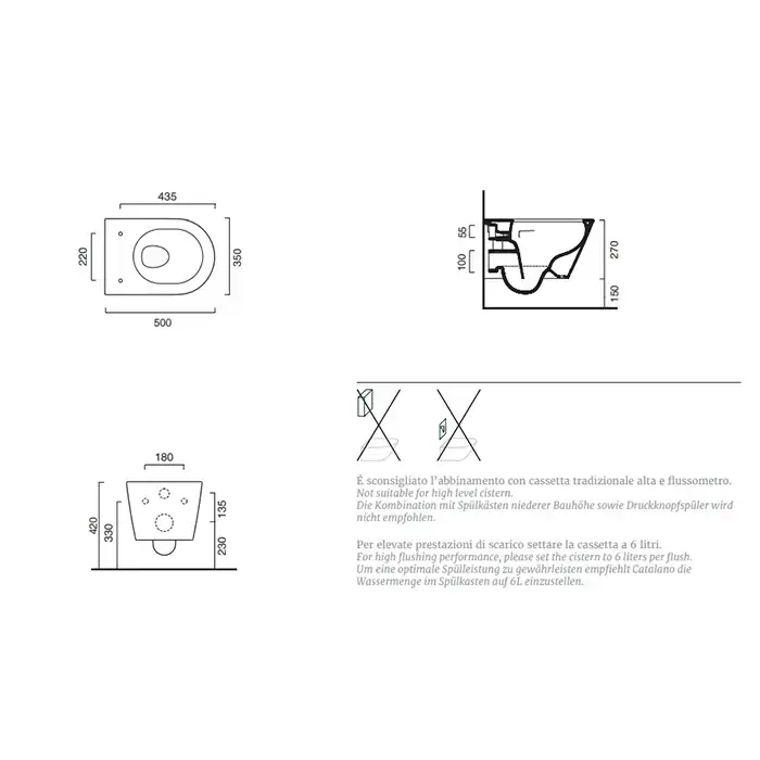 Catalano ZERO Унитаз подвесной 50x35, безободковый, смыв Tornado, покрытие Cataglaze+, без крепежа, цвет белый глянцевый