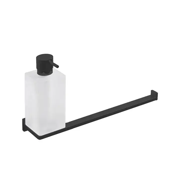 Colombo Look Полотенцедержатель с дозатором для жидкого мыла, подвесной, цвет: чёрный матовый/матовое стекло