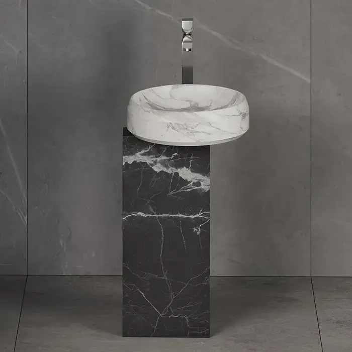 Dea Design Marble Marsala Раковина 46.5х46.5х90см., напольная, без отв., мрамор, цвет: White Cararra/Black Marquina