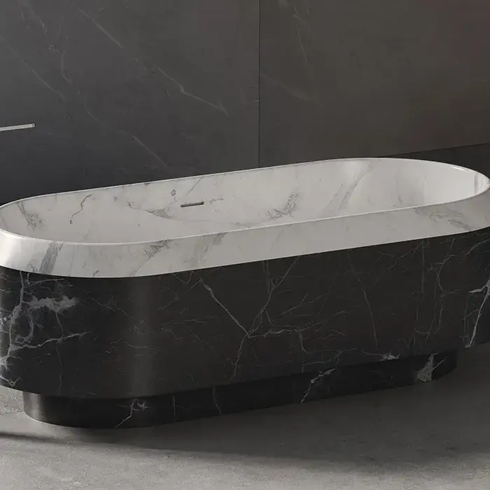 DEA DESIGN Marble Ванна Parma из мрамора отдельностоящая 1680х770хh563 мм , цвет чаша с бортиком White Cararra/внешняя часть Black Marquina