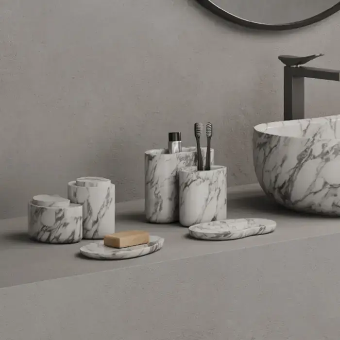 DEA DESIGN Marble Стакан из мрамора настольный h150х150х100 мм , цвет Statuario White