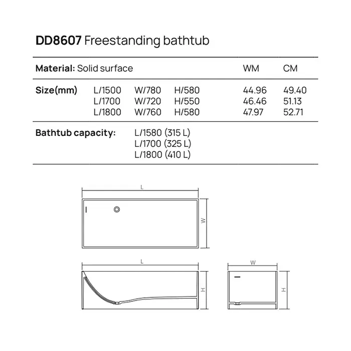DEA DESIGN Modern Ванна отдельностоящая 180x76xh58 см, материал: Solid Surface искуственный камень, цвет: White №18