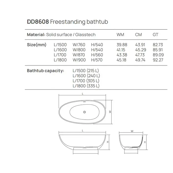 Dea Design Modern Ванна 150х68х56см., отдельностоящая, Solid Surface, цвет: White №18