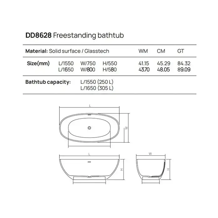 Dea Design Nature Ванна 155х75х55см., отдельностоящая, Solid Surface, цвет: White №18