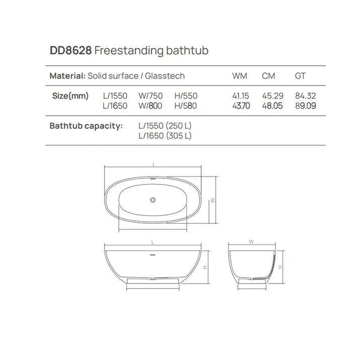 Dea Design Nature Ванна 155х75х55см., отдельностоящая, Solid Surface, цвет: White №18