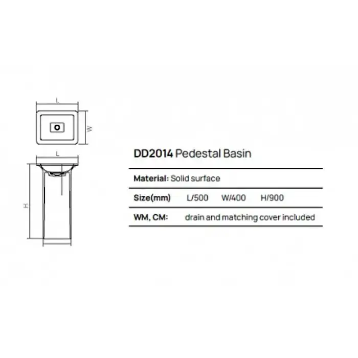 Dea Design Pedestal Basin Раковина 50х40х90см., напольная, без отв., Solid Surface, цвет: Black №16