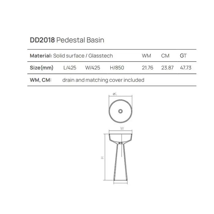DEA DESIGN Pedestal Basin Раковина напольная d425хh850 мм, цвет grey