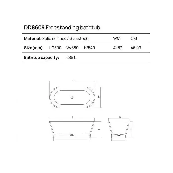 DEA DESIGN Shadow Ванна отдельностоящая 150x68xh54 см, материал: Solid Surface искуственный камень, цвет: Black №16
