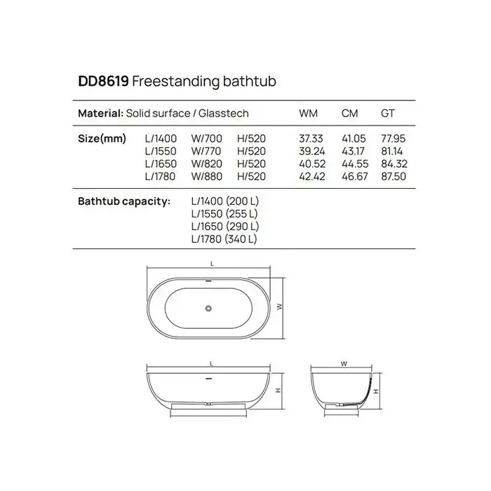 Dea Design Shadow Ванна 155х77х52см., отдельностоящая, Solid Surface, цвет: White №18