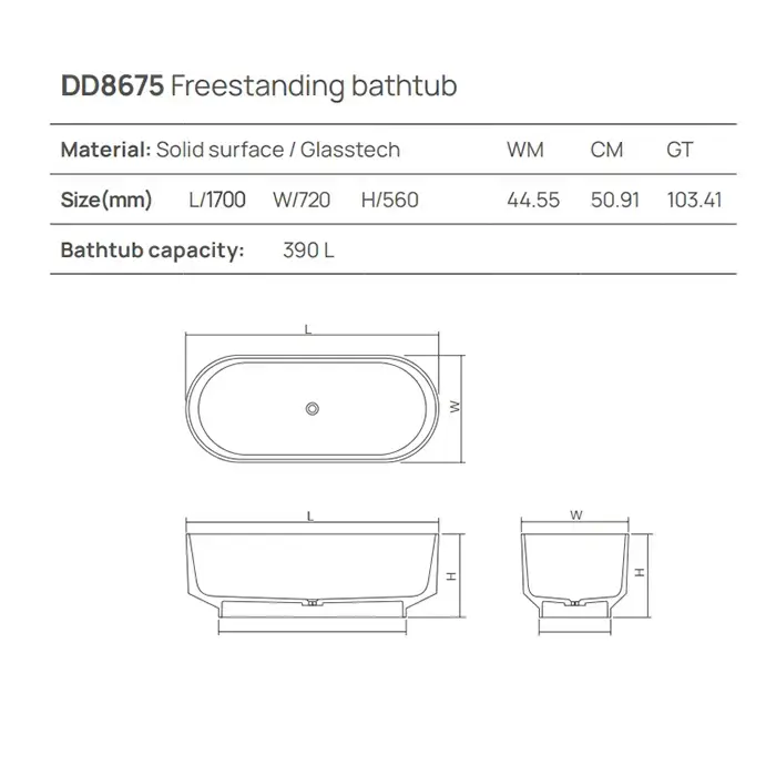 Dea Design Shadow Ванна 155х77х52см., отдельностоящая, Solid Surface, цвет: White №18