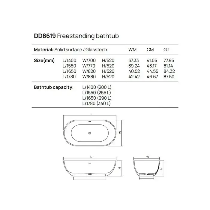 DEA DESIGN Shadow Ванна отдельностоящая 178x88xh52 см, материал: Solid Surface искуственный камень, цвет: Black №16