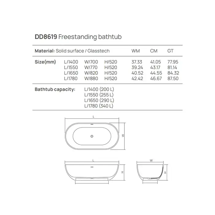 Dea Design Shadow Ванна 155х77х52см., отдельностоящая, Solid Surface, цвет: White №18