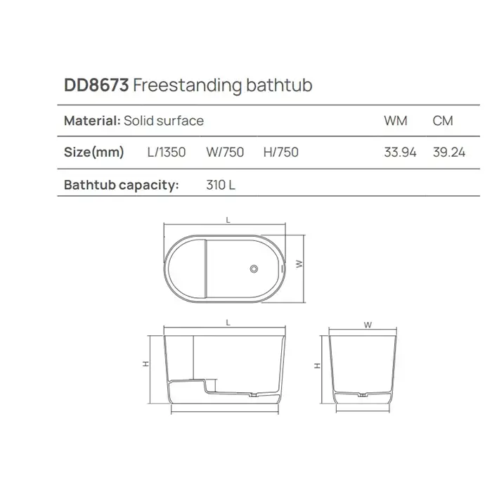 Dea Design Single Ванна 135x75xh75см, отдельностоящая, цвет: белый