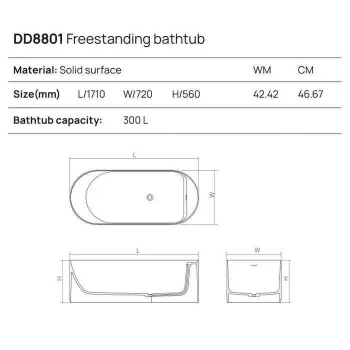 DEA DESIGN Stripes Ванна отдельностоящая 171x72xh56 см, материал: Solid Surface искуственный камень, цвет: Black №16