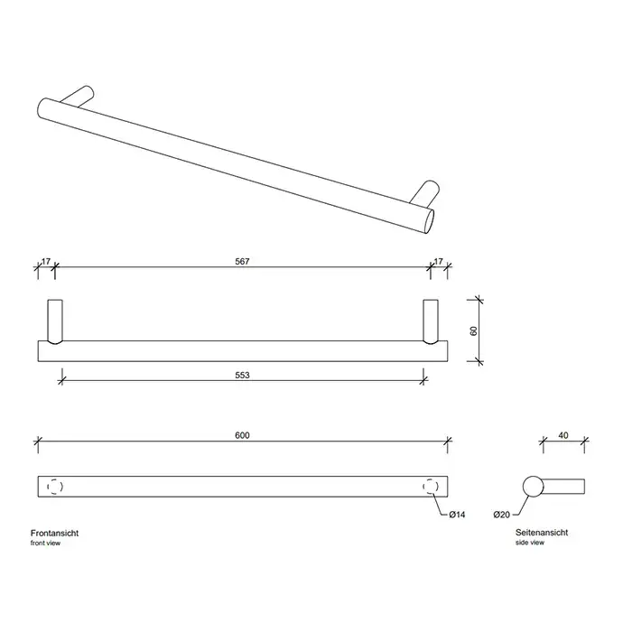 Decor Walther Bar Полотенцедержатель 60см., подвесной, цвет: сталь матовая