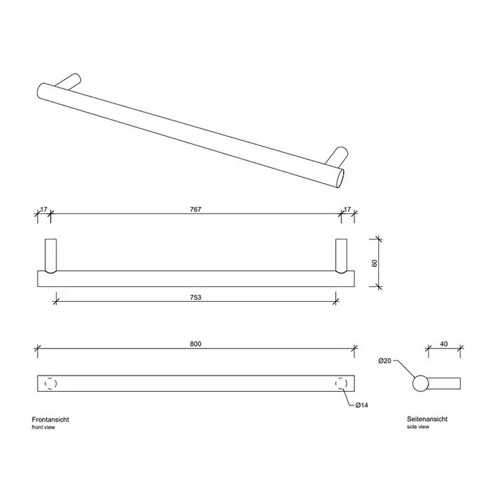 Decor Walther Bar Полотенцедержатель 80см., подвесной, цвет: сталь матовая