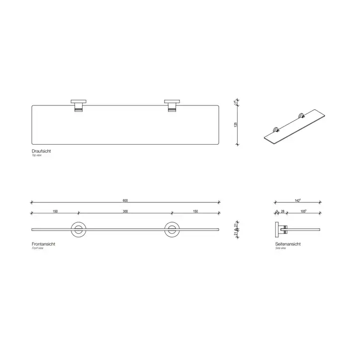 Decor Walther Basic GLA60 Полка стеклянная 60x14см, подвесной, цвет: черный матовый