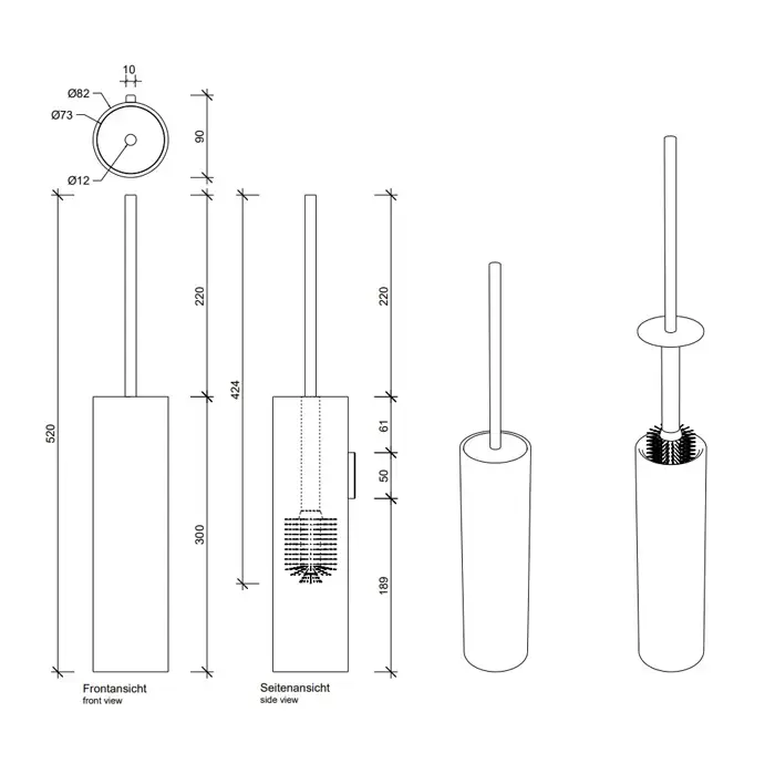 Decor Walther Black Stone WBG Туалетный ершик, подвесной, цвет: черный матовый / матовая сталь