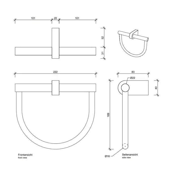 Decor Walther Century HTR Полотенцедержатель кольцо 22см., подвесной, цвет: золото матовое