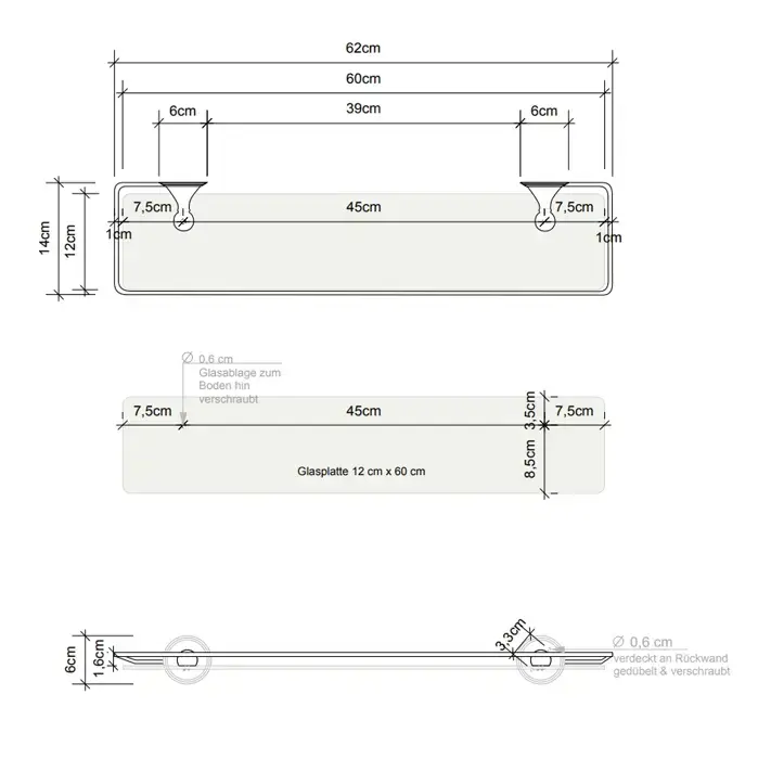 Decor Walther Classic GLA R Полка стеклянная 62x14.5см, подвесной, цвет: хром
