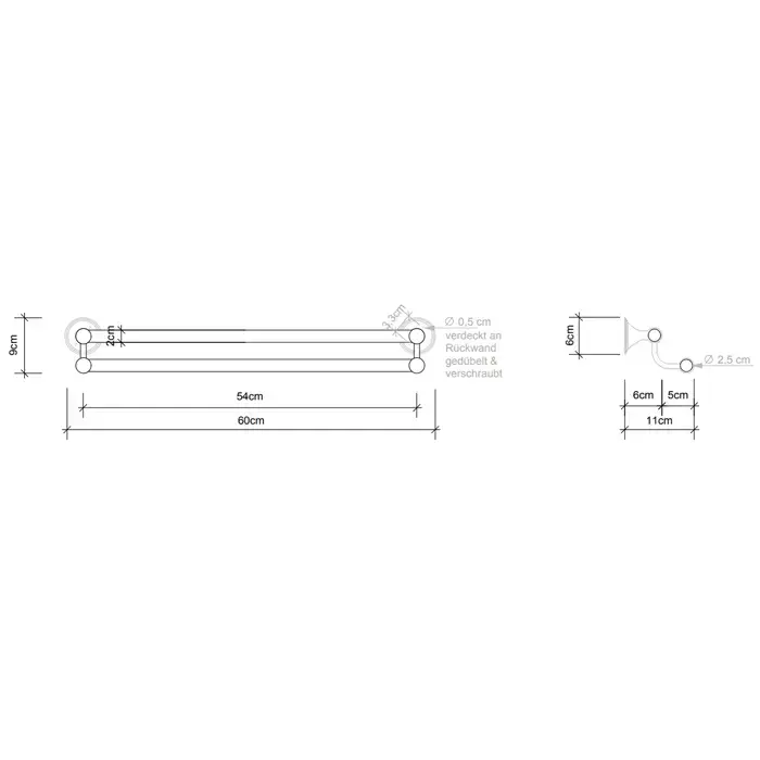 Decor Walther Classic HTD60 Полотенцедержатель двойной 60см, подвесной, цвет: никель полированный