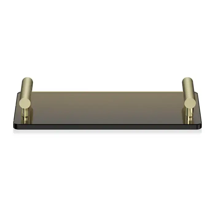 Decor Walther Club Tab Поднос с ручками, стеклянный, настольный, цвет: матовое золото / тёмно-коричневое стекло
