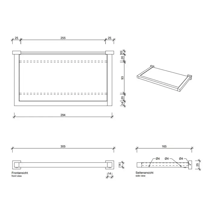Decor Walther Corner GLA30 Полочка стеклянная 30x16.5см, подвесной, цвет: черный матовый