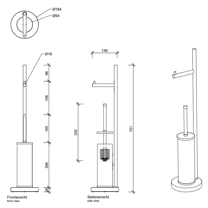 Decor Walther DW 670 Напольная стойка 75.1см., с ершиком и бумагодержателем, цвет: золото