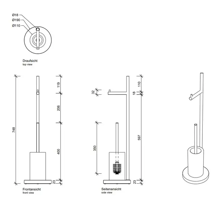 Decor Walther DW 6710 Напольная стойка 73см., с ершиком и бумагодержателем, фарфор, цвет: хром / белый