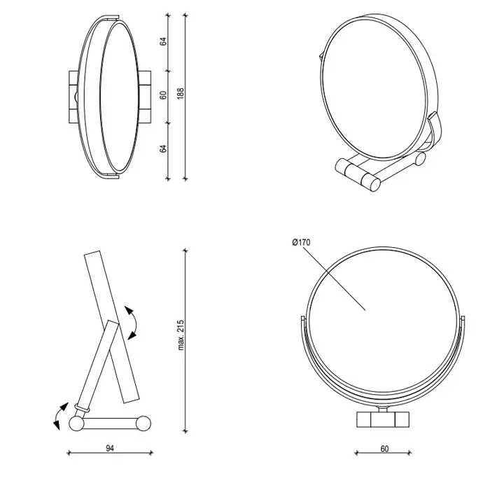Decor Walther SPT 50 Косметическое зеркало 17см, настольное, увел. 5x, цвет: хром