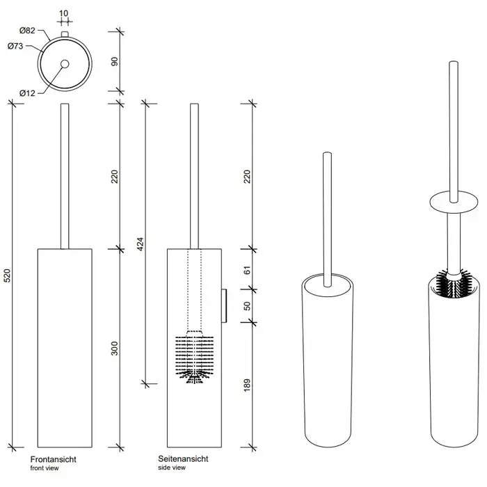 Decor Walther Stone SBG Туалетный ершик, напольный, цвет: белый / сталь матовая