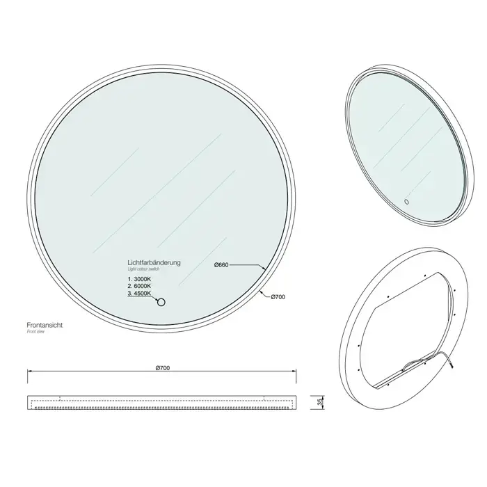 Decor Walther Stone Зеркало круглое 70см, LED, искусственный камень, подвесное, цвет: белый