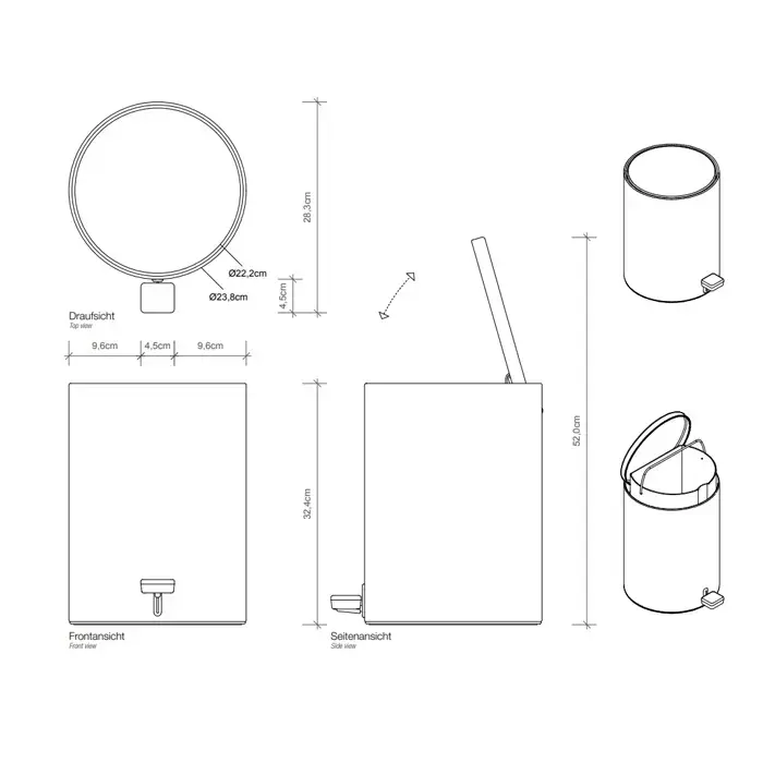 Decor Walther TE 50 Ведро 23.5xh32см, с педалью и крышкой, softclose, напольное, цвет: хром