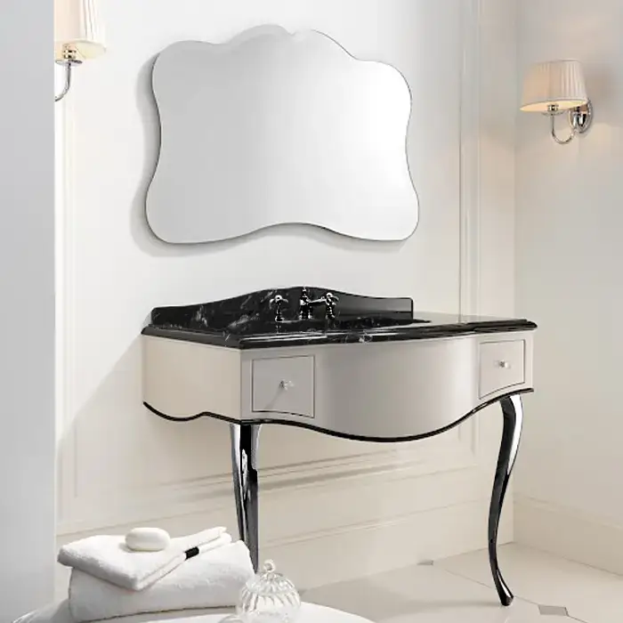 Devon&Devon Audrey, Комплект мебели мрамор: Nero Marquinha, ножки хром, напольный, Цвет: белый с черным кантом