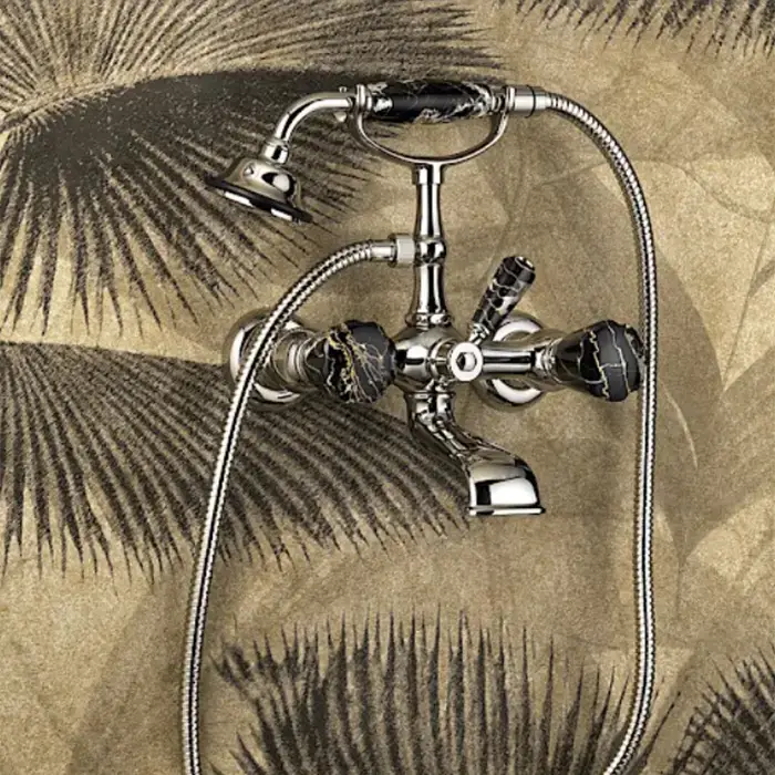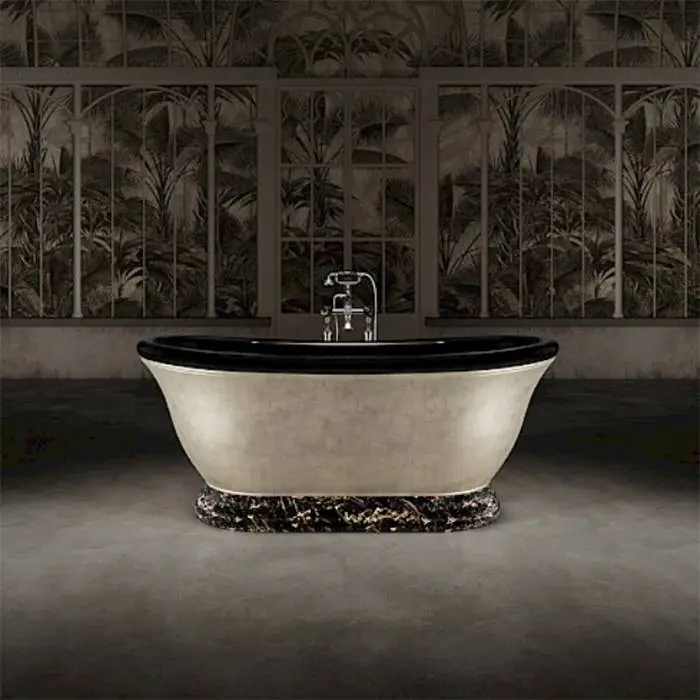 Devon&Devon Aurora 30 Ванна отдельностоящая, 171x87xh70,5cм, материал: white teс, алюминиевый лист с платиновой отделкой+ смеситель Morris30 с ножками, цвет: Portoro/черный глянцевая